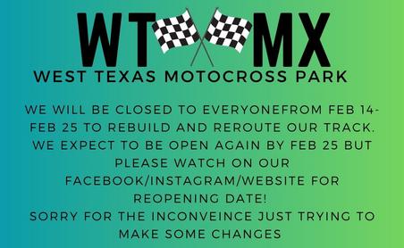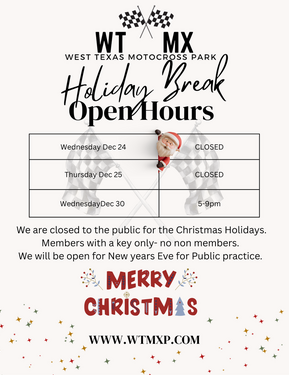 Anyone Under age 18 must have a parent or legal guardian with them. BE AWARE OF TRACK RULES BEFORE RIDING